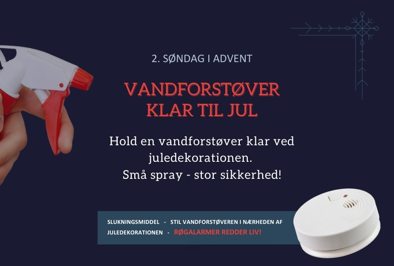 Hold en vandforstøver klar ved dine juledekorationer – så er du godt forberedt på at slukke små flammer hurtigt og undgå, at branden spreder sig.